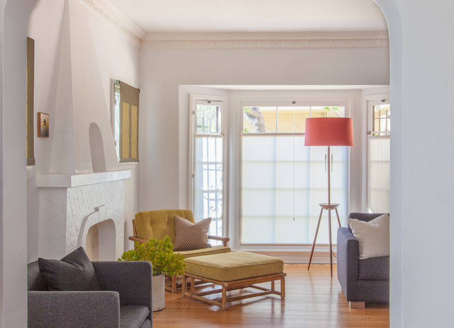 Client: award winning sound engineer. An introverted and innovative entepreneur wanted to live quietly in a home that displayed his coveted collections of art and vintage poetry in an elegant, tasteful way. To achieve this, Shapiro Joyal used the art deco motifs of the 1930’s architecture as her inspiration, allowing geometry and clean lines to serve as a backdrop for minimal yet soulful furniture. Masculine materials such as solid walnut, solid maple, charcoal wool felt and black ironwork create a strong contrast to the white walls and parchment window shades. Streamlined custom furniture is combined with Japanese antiques to lend nuance and richness to the art deco home, working in harmony with the geometric motifs of the architecture.